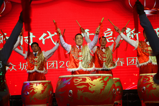 團拜會文藝匯演在《中國龍鼓》的雄壯節(jié)奏中盛大啟幕。