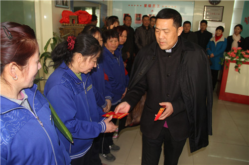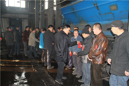 2015年2月17日清晨八時(shí),在春節(jié)前夕,萬家團(tuán)圓的美好日子里,雷光新董事長(zhǎng)心系一線員工,帶領(lǐng)集團(tuán)公司高層管理人員,慰問熱力公司司爐工和物業(yè)公司秩序維護(hù)員和保潔員。